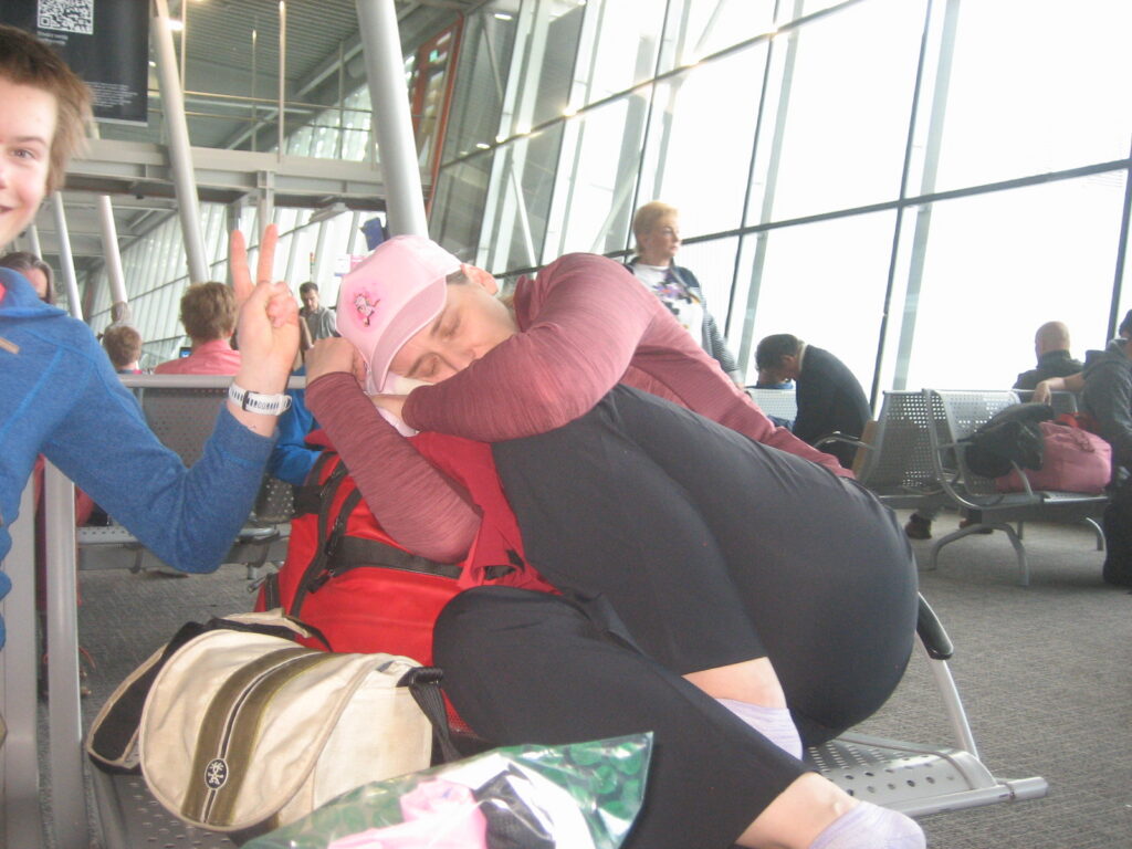 Meie reis algas kell 3.30 hommikul Tallinna lennujaamas. Tegime esimese grupipildi tiimist ja ka koos vanematega. Andsime ära oma kohvrid ja läbisime turvakontrolli. Väljumisvärava juures oodates alustasime vlogi filmimisega. Kuna oli nii vara hommikul ja kõik olid veel üsna väsinud, alustasime rahulikult toidu otsimisega, edasiste plaanide arutamise ja pooleldi magamisega.