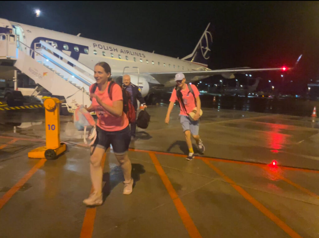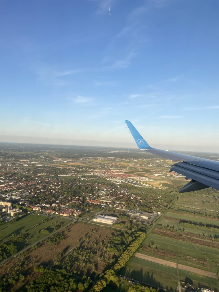 Kell 5.45 tõusis lennuk Tallinnast õhku. Üllatuslikult istusid Mai ja Romet ülebroneerimise tõttu lennuki kõige esimeses reas. Ülejäänud meist aga istusid lennuki kõige viimases reas. Vaade lennukist oli ilus, kuigi enamus aja lennust kõik magasid. Pärast umbes 1,5-tunnist lendu maandusime Varssavis, Poolas.