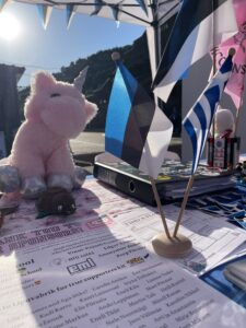 Päeva alguses käisime tiimide juures, suhtlesime nendega ja jagasime pakikesi. Pakikesed olid meil ägedad: paberkotid, mille saime Liialt (aitäh!); kogukonna poolt kogutud Eesti kommid; meie tiimi kleeps ja voldik. Romet ja Oliver jäid boksi hindajate ja teiste tiimidega suhtlema, sealhulgas ka boksi valvama. Väga äge oli käia teiste rahvaste, kultuuride ja inimeste juures. Saime teha palju pilte, praktiseerida inglise keelt ja proovida isegi eri rahvariiete elemente. Minu meelest oli üliäge käia meie boksi kõrval asuva riigi juures, sest nemad andsid meile pähe panemiseks rahvuslikud peakatted ja me panime neile pähe üksssarviku sarved. Samuti pakuti meile ka rahvuslikke suupisteid, kus ütleme nii, Mirtel sai ühe korraliku kultuurišoki. Lisaks filmisime paar storyt Lipuvabriku jaoks, kes olid meile toonud üli nunnud lipud.