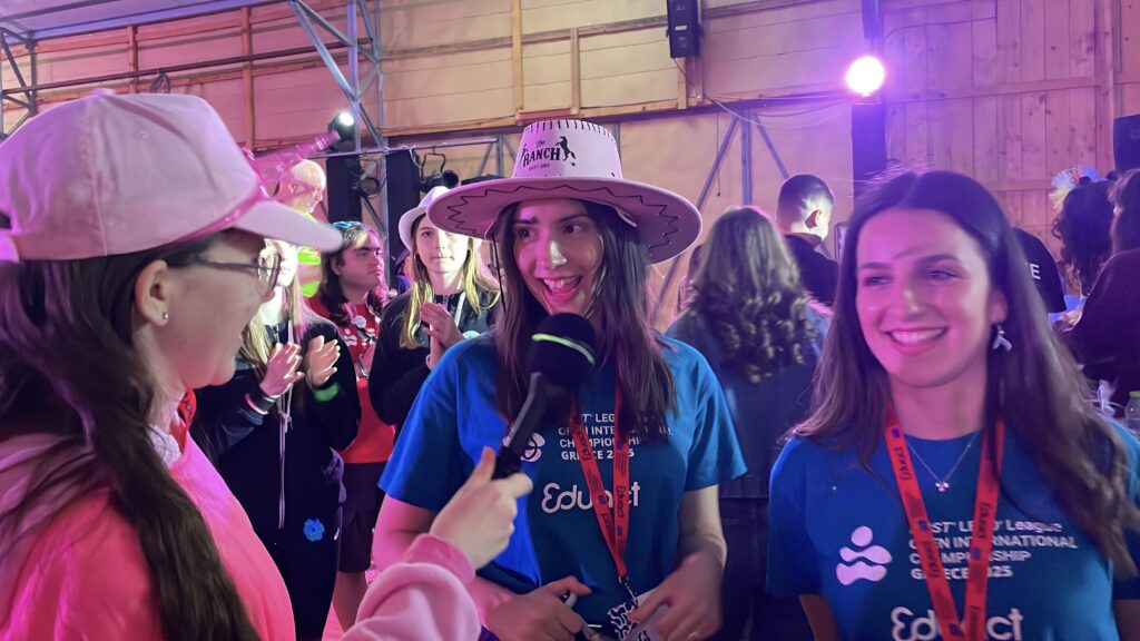 Seal me ootasime teisi tiime, et kõik kohale jõuaksid. Selgitati juhised meile mikrofoniga, mega palav oli. Jagunesime siis meeskondadeks. Meie meeskonnas oli Kasahstani tiim Qasygurt ja Ungari tiim S-team. Meile kõigile anti kast koos – mängu, juhiste ja plaaniga ning tokiga, kuhu vist lipp otsa panna. Pidime käima numbrite järgi, kuid ei saanud eriti aru, kuhu minema peame, nii et jooksime teistele järgi, sest tundus, et nad teadsid, mida teha. Lisaks rääkisid nad ka enda keeles, nii et ei olnud kõige lihtsam aru saada. Esimene punkt – tuli visata selline kaks nööriga ühendatud palli pulga otsa. Igaüks pidi viskama ja kõik, kes kolmest tiimist viskas palli pulga otsa, sai tiimile punkti. Meist sai pihta ainult Oliver ja kui ma ei eksi, siis meeskonna peale saime kokku umbes 5 punkti. Jooksime edasi teise punktini. Seal tuli välja valida iga tiimi esindaja, meie valisime Oliveri, sest talle meeldivad krabajad. Tuli krabajaga saada pall topsi. Kolmas punkt oli õige võtme leidmine. See läks meie tiimi esindajatel päris libedalt, kuid Ungari tiimikad ei saadudki seda lukku lahti ja meil lihtsalt lubati edasi minna.