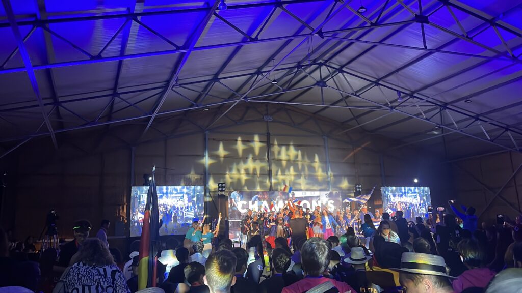 Kell 21.00 hakkas rongkäik. See oli võimas ja hoopis midagi muud, kui see mida Eestis kogenud oleme. Kõik tiimid olid super energiaga, hiiglaslikud lipud lehvisid ja iga tiimi juurest kostus rõõmsaid hõikeid. Rongkäigus olime Soome tiimi, Superfast Unicorns, ees. Nii tore oli juba tuttavaid tiime näha! Olime nendega Soomes võistlemas käies juba tuttavaks saanud.