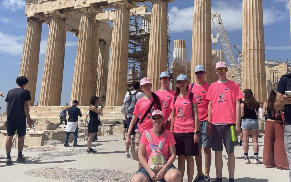 Viies ja ühtlasi viimane päev Kreekas. Hommikul ärkasime natukene hiljem, kui eelnevad päevad rantšos. Siiski olime ikkagi väsinud eelmistest päevadest, mis olid olnud väga tempokad ja pikad. Hommikusööki valmistasime ise: Mirtel tegi meile kõigile munaputru, mis oli lihtne aga maitsev. Greete kirjutas isegi mõned postkaardid, kuid sellega kaugele ei jõudnud. Pärast seda asusime kohe oma asju kokku pakkima, mis lõpuks läks parajaks kaoseks… Kui saime väikese Veneaegse liftiga kõik kohvrid alla (isegi Greete kohvri, mida tuli koostööle allutada), siis võtsime suuna kohvri hoiustamis asutuse poole. Sinna jalutasime umbes 20 min, selle aja jooksul jõudsid kohvrid liikuda ühelt inimeselt teisele, kuna need olid väga rasked. Pärast kohvrite kappidesse jätmist liikusime edasi Ateena akropoli suunas. Akropoli juurde jõudes avastas Mirtel, et oleme geopeituse asukoha lähedal. Natukese otsimisega leidsimegi aarde ülesse. Seejärel liikusime broneeritud piletitega akropoli. Ronisime vaevaliselt palavusega tippu ning tegime pilte ja videoid. Seejärel andsime üksteisele vaba aega akropolise ja selle vaadete nautimiseks ja avastamiseks. Kokkulepitud kellaajaks liikusime väljapääsu juurde ja kogunesime taas kokku. Mööda turistirikkaid tänavaid liikusime olümpia staadioni poole. Jalutamine oli kõhud tühjaks teinud ning kuna tiimis on erisoove söögi osas, siis läksime lahku ja ostsime endale sobivast kohast süüa. Romet sõi croissant´i ja Fantat. Eriti maitsvad olid Oliveri pikad kommid (tegelikkuses ostis ka Romet neid). Greete ja Mirtel nautisid kohaliku joogiputka jooke – Greete värsket apelsinimahla ja Mirtel jäätisekokteili. Siis läksimegi olümpia staadionit uudistama. Just sellel staadionil toimusid esimesed tänapäevased olümpiamängud, ning ka täna toimus seal mingi väiksem võistlus või üritus, millest keelebarjääri tõttu aru ei saanud. Greete isegi tegi väikese võidujooksu mööda staadionit. Tegime pilte ja videoid sotsiaalmeedia jaoks. Seejärel läksime tagasi kohvri hoiustus asutusse. Tee peal ostsime veel viimaseid suveniire ja käisime läbi Starbucksist ning kohalikust toidupoest. Ja oligi aeg liikuda lennujaama. Kell oli vaevu kolm, kui hakkasime staadionilt liikuma. Võtsime oma kohvrid ning liikusime metroo peale. Metroo piletitega juhtus ka üks päris huvitav lugu. Esiteks oli masin katki ja kaardid ei töötanud, lõpuks teise masina juurest siiski saime pileti. Ja Oliveril, kui hakkas minema pileti väravast läbi, juhtus niimoodi, et ta kogemata pani korra pileti kuid ei jõudnud piisavalt kiiresti läbi ning enam pilet ei töötanud. Õnneks siiski sai ta kellegi teise järelt läbi tulla ja pärast probleeme ei tekkinud. Metroos häirisid meie rahu kohalikud pillimängijad (tegelikult täitsa lõbus) Pärast esimest metrood kaalusime ja pakkisime oma kohvreid keset peatust ümber. Napilt enne järgmise metroo tulekut saime viimased lukud kinni tõmmatud. Lennujaamas pidime kiletama oma Roll-Up-id ning lõpuks selgus, et peame selle viima mitte-standartsete pagasite check in-i. Kahjuks läks meil juba lennukile minekuga väga kiireks ja postkaardid jäid saatmata, oleksime peaaegu lennukist maha jäänud. See läks korraks täitsa kaoseks. Nt. läks Greete vetsu riideid vahetama, kui avastas sealt Mai telefoni, mis oli ennist sinna jäänud. Lennukisõidul midagi ülipõnevat ei juhtunud. Romet ja Oliver vaatasid Breaking Bad’i, tüdrukud tegelesid videote monteerimisega ning Karl magas. Poola lennujaama jõudes oli aeg süüa otsida. Tahtsime süüa Subway-d mida otsisime pikalt, kuid avastasime et see on teisel pool turvakontrolli. Pärast Rometi maksevahendite puudumist saime lõpuks söönuks ning puhkasime lennu värava ees. Me ei jaksanud enam midagi teha nii, et Romet ja Oliver mängisid arvutis ja teised puhkasid niisama, pooleldi magades. Lõpuks saime lennukisse ja jõudsimegi tagasi Eestisse. Tallinnasse jõudes võttis ilm meid vastu külma ja tuulise vihmaga, mis viis viimased mõtted unest minema. Saime kätte oma kohvrid ja väljusime lennujaamast. Seal ootasid meid meie vanemad, kes meid siis koju viisid. Ja nii jõudiski meie imeline seiklus lõpule.
