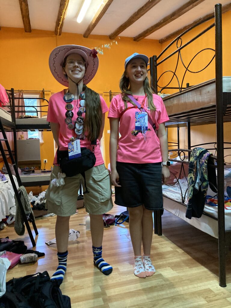 Kuna buss jõudis nii hilja kohale, siis olime graafikust väga maas. Pärast söömist oli kiire asjade lahtipakkimine ning vajalike asjade valmis panemine. Lipud oli vaja kokku panna, kostüümid selga ajada jne. Vähemalt Greete, Mirteli ja Mai toa kohta võib öelda, et 5min pärast kohvrite avamist ei olnud põrandat asjade alt enam nähagi.